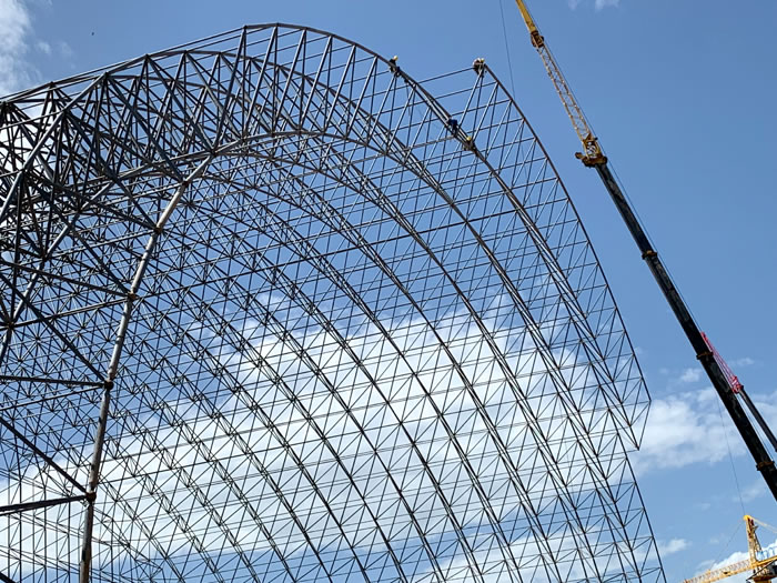 (2)网架加工前应对现场尺寸进行复测,确认无误后方可进行加工、安装;网架制作、运输、安装应遵守《空间网格结构技术规程》JGJ7-2010、《钢网架湘西螺栓球节点》JG/T 10-2009、《钢网架湘西螺栓球节点用高强度螺栓》 GB/T 16939-2016、《湘西钢结构湘西工程湘西施工规范》 GB50755-2012、《湘西钢结构湘西工程施工质量验收标准》 GB50205-2020。